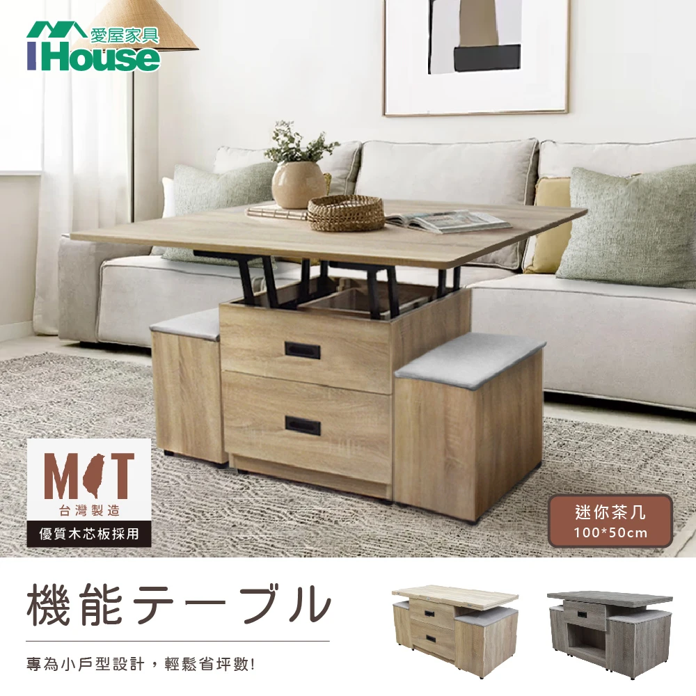 IHouse MINI 升降茶几/收納餐桌/1桌2椅(長100*寬50)