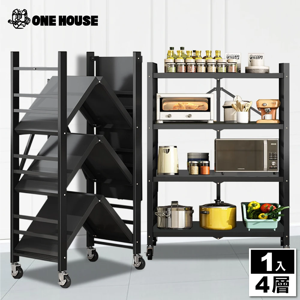 ONE HOUSE 四層70寬_升級全碳鋼 洛克免組裝折疊置物架(廚房架/層架/收納架/鐵架/電器架/書架)
