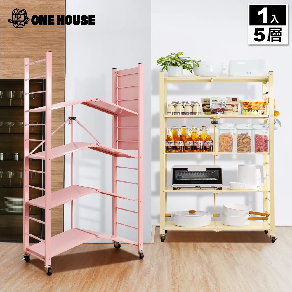 ONE HOUSE 五層70寬_升級全碳鋼 洛克免組裝折疊置物架附輪-9色可選(鐵架/收納架/書架/免安裝/層架)