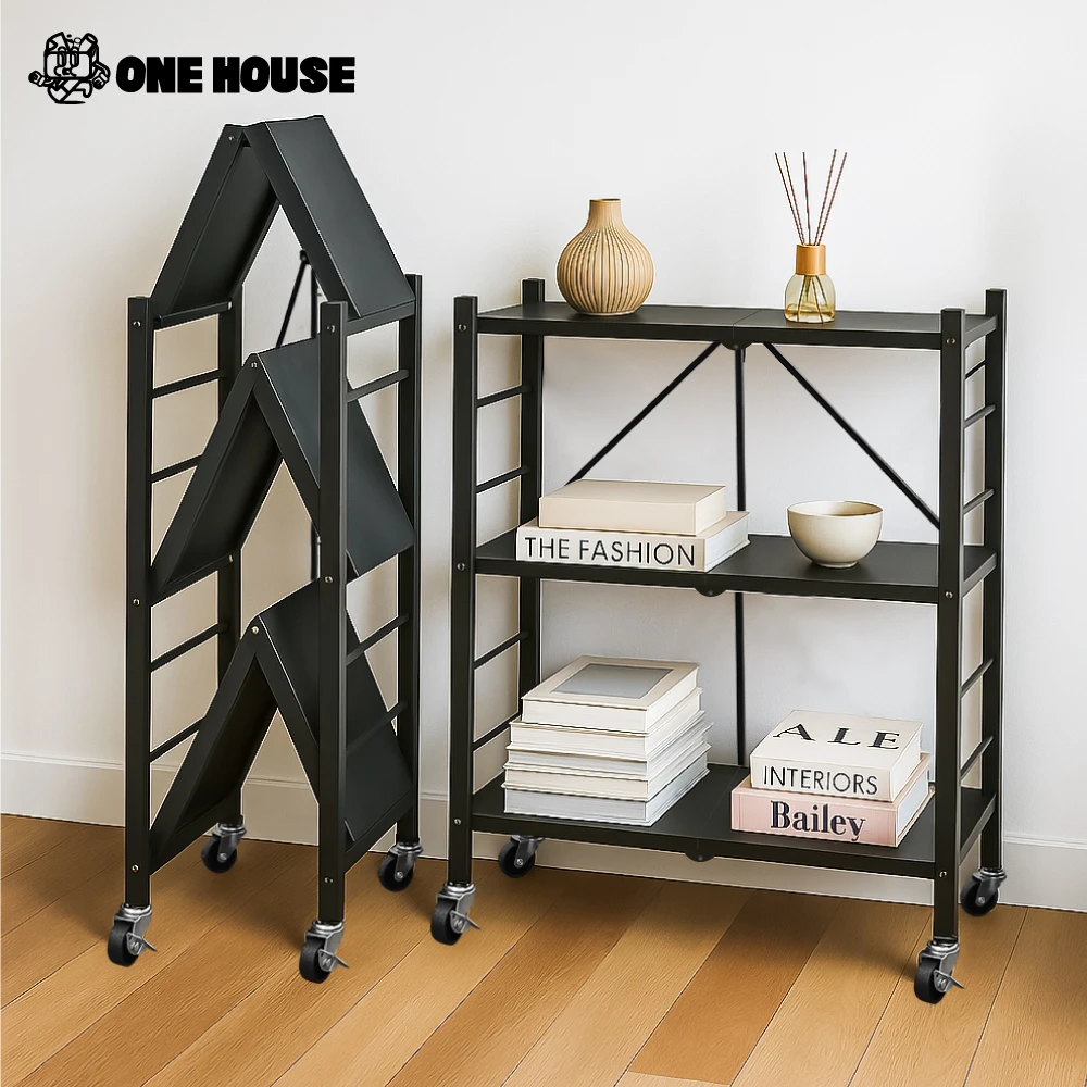 ONE HOUSE 三層70寬_升級全碳鋼 洛克免組裝折疊置物架(廚房架/層架/收納架/鐵架/電器架/書架)