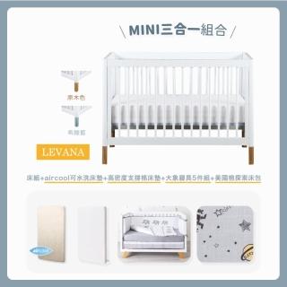 LEVANA minicolor三合一嬰兒床+高度支撐棉床墊+aircool有機棉可水洗床墊+大象寢具五件組+送柔織床包