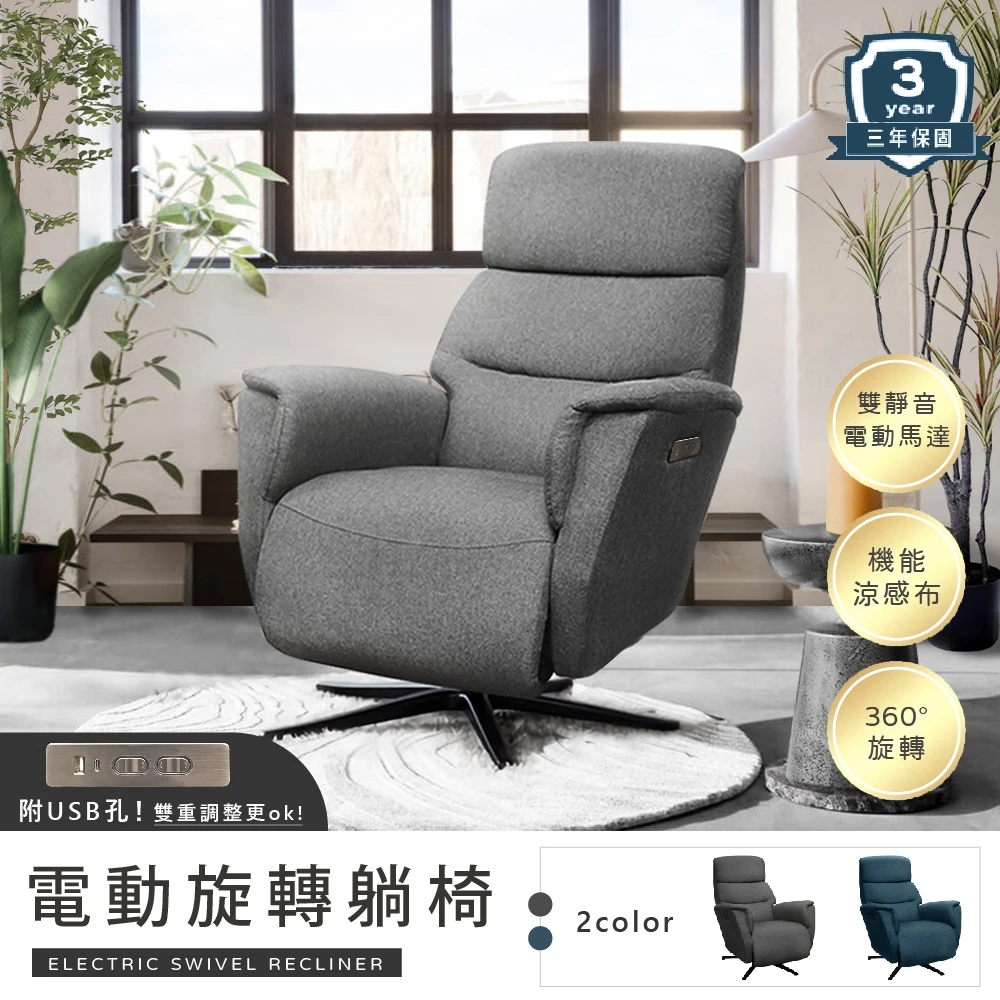 IHouse 設計師款涼感布 電動單人沙發/旋轉椅/躺椅(USB孔)