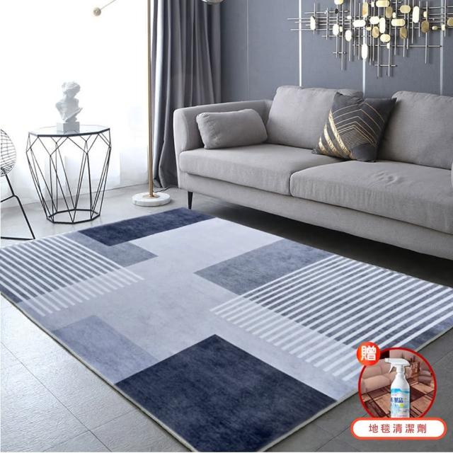 半島良品 買1送1-侘寂風北歐加大水晶絨止滑地毯200x140(客廳地毯/保溫保暖地墊)