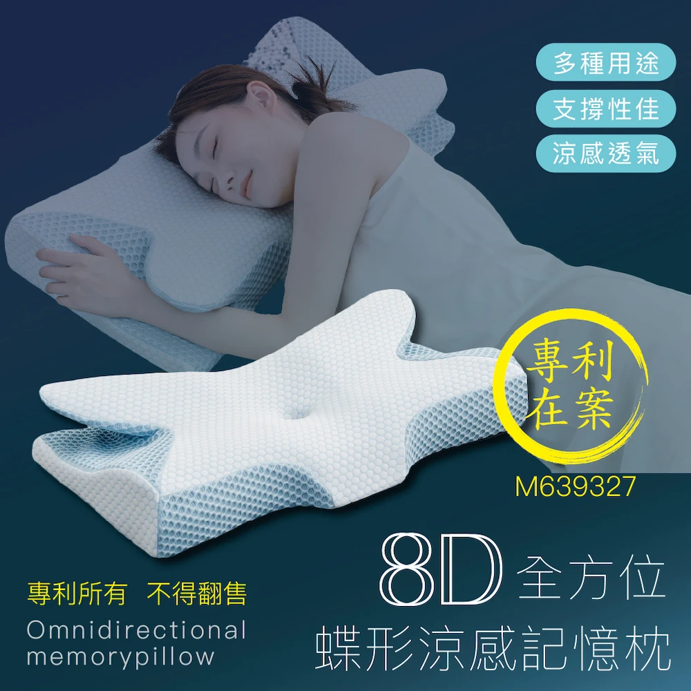 日禾家居 冰絲涼感/石墨烯8D蝶型記憶枕 蝶形枕 太空記憶枕(新型專利註冊)