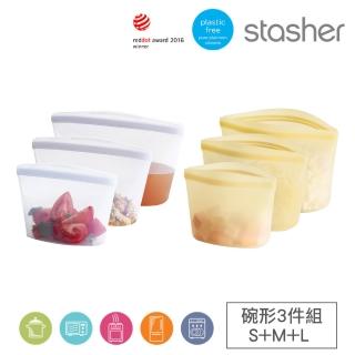 美國Stasher 碗形S+M+L 實用推薦3件組|矽膠密封保鮮食物袋(食物分裝、冷凍分裝、專利按壓即密封)