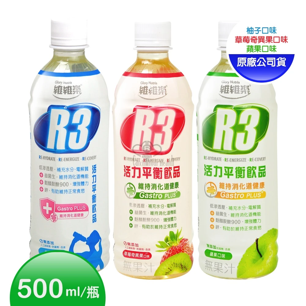 維維樂 R3活力平衡飲PLUS 500mlX24瓶/箱(草莓奇異果/柚子/蘋果)