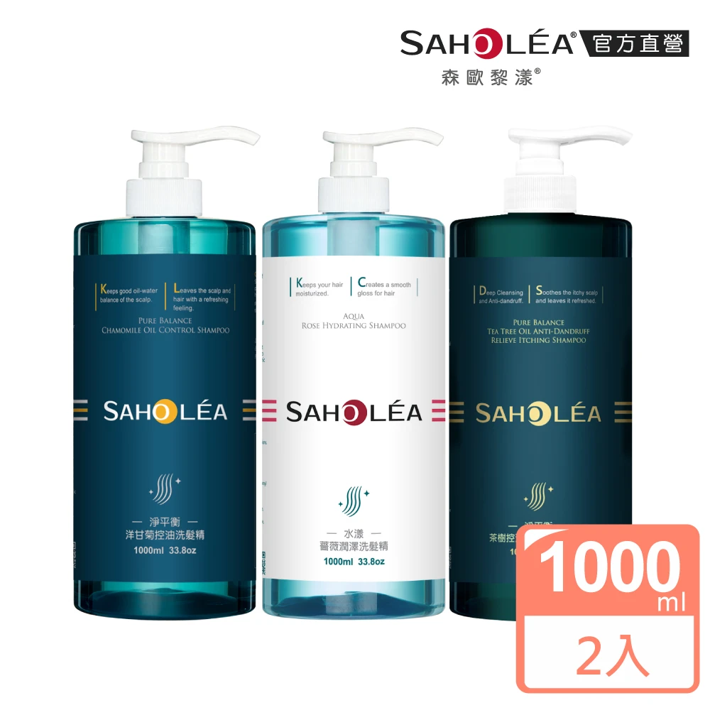 SAHOLEA 森歐黎漾 加大版 經典系列 洗沐護1000ml x2入(多款任選/淨平衡洋甘菊/淨平衡茶樹/水漾薔薇)