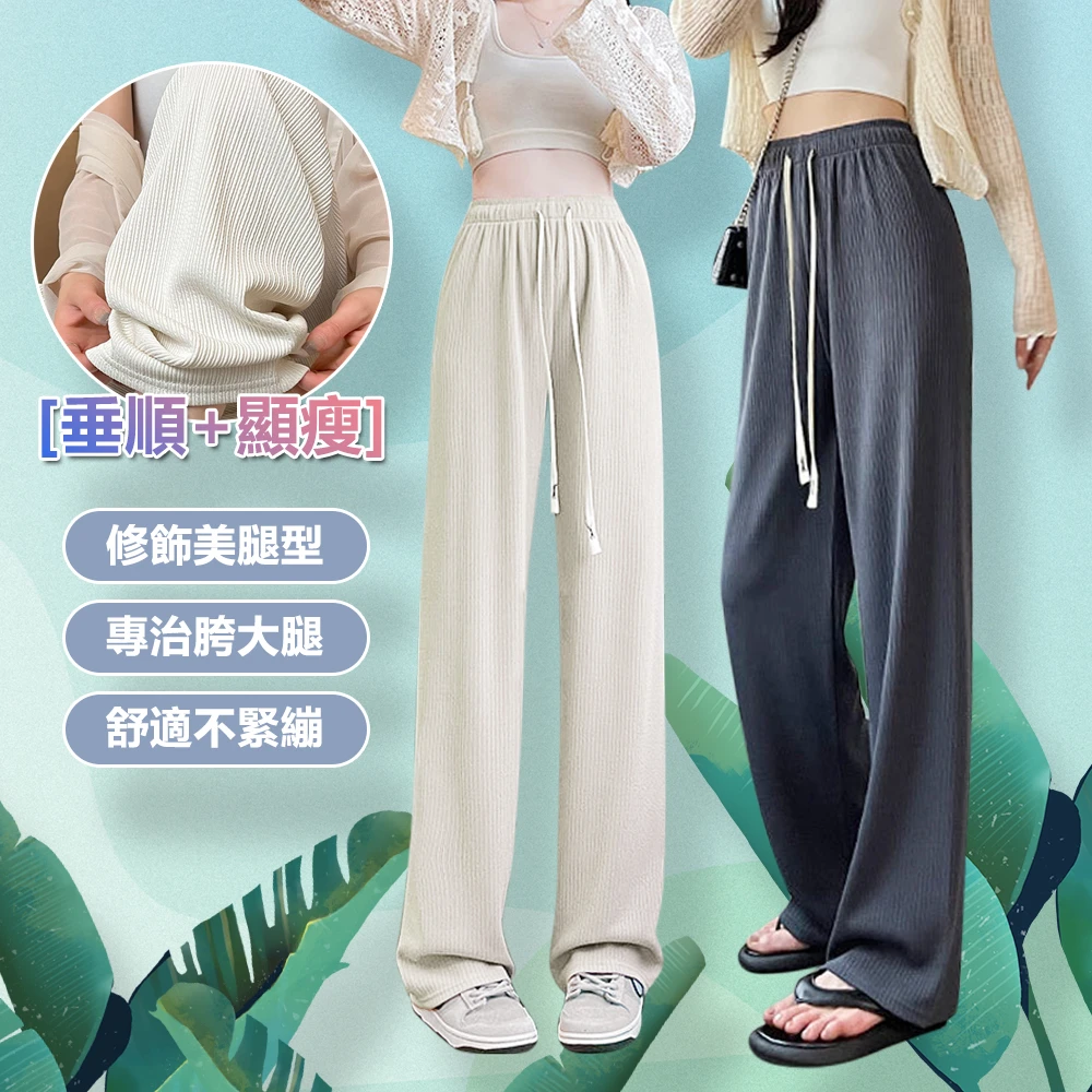 charme 網紅爆款高腰百搭顯瘦休閒抽繩垂感直筒泡芙褲(網紅KOL梨形友善褲大尺碼)