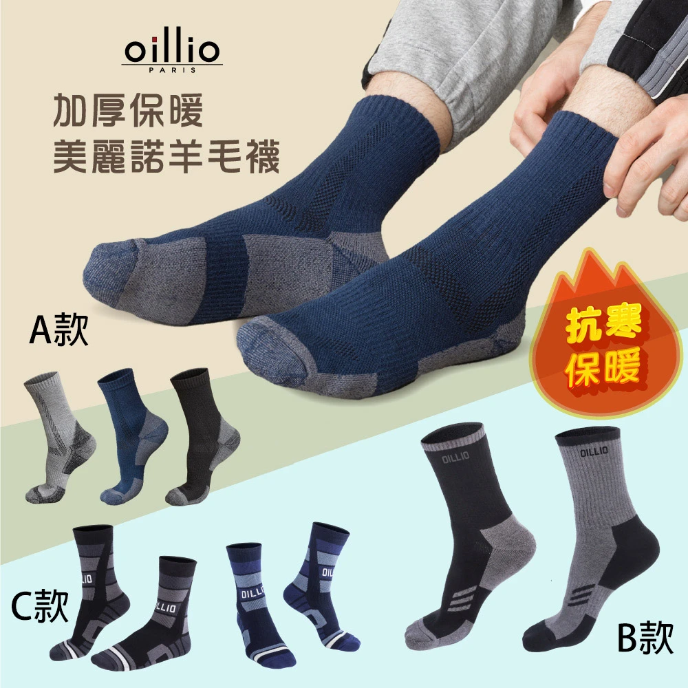 oillio 歐洲貴族 4款3雙 美麗諾羊毛襪 加厚氣墊保暖襪 抗寒蓄熱 防護 機能 中筒襪(男女適穿 襪子)