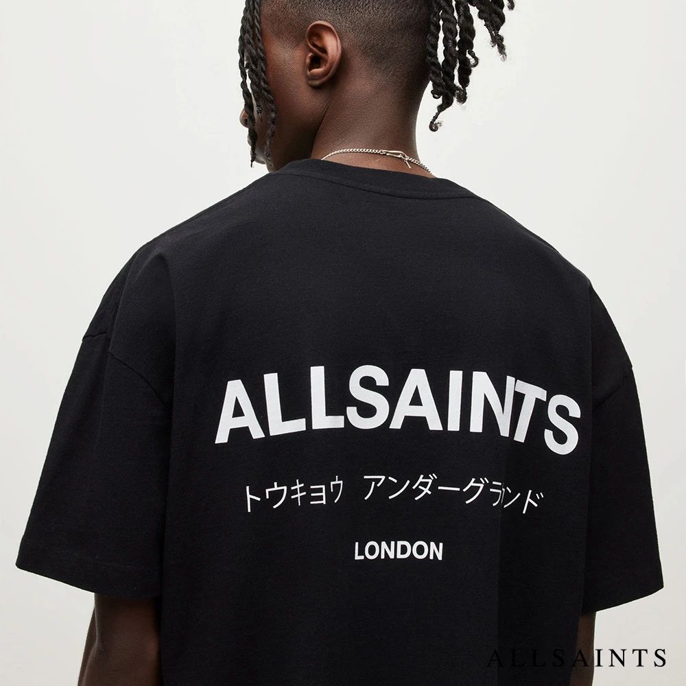 預購 ALLSAINTS UNDERGROUND 純棉寬鬆LOGO東京地下搖滾短袖T恤-黑 M071PB(寬鬆版型)