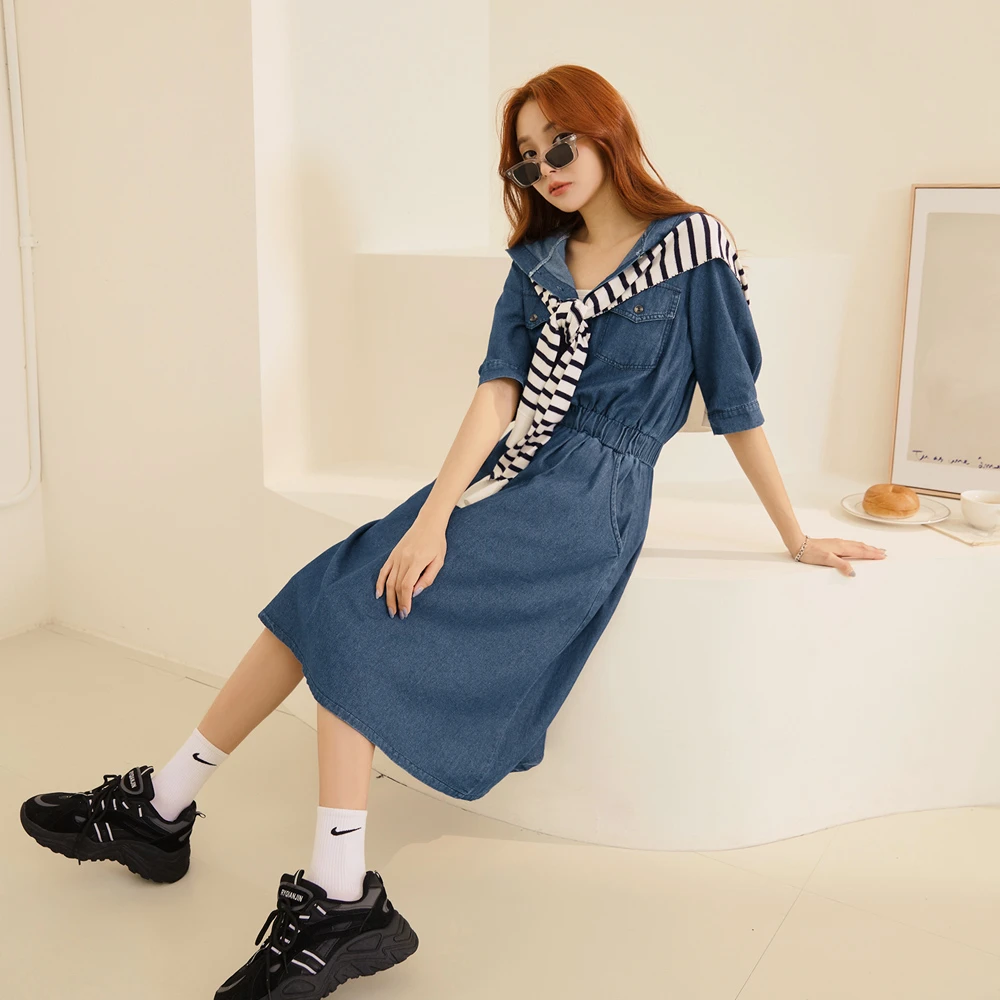 OB 嚴選 高含棉牛仔收腰鬆緊排釦連帽洋裝 《DA9593》