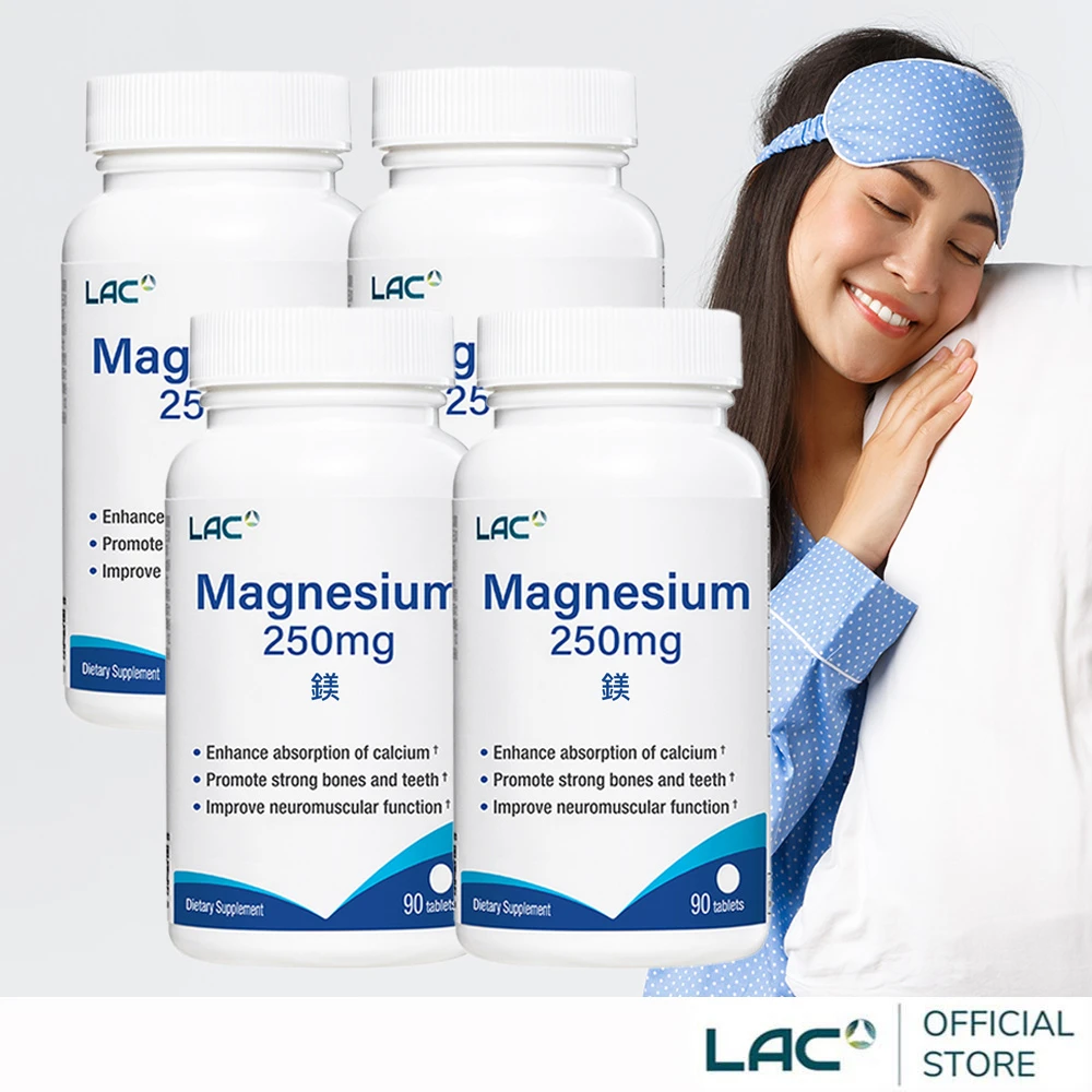 LAC 利維喜 鎂250食品錠x4入組(共360錠/鎂夢成真/幫助入睡/素食可)