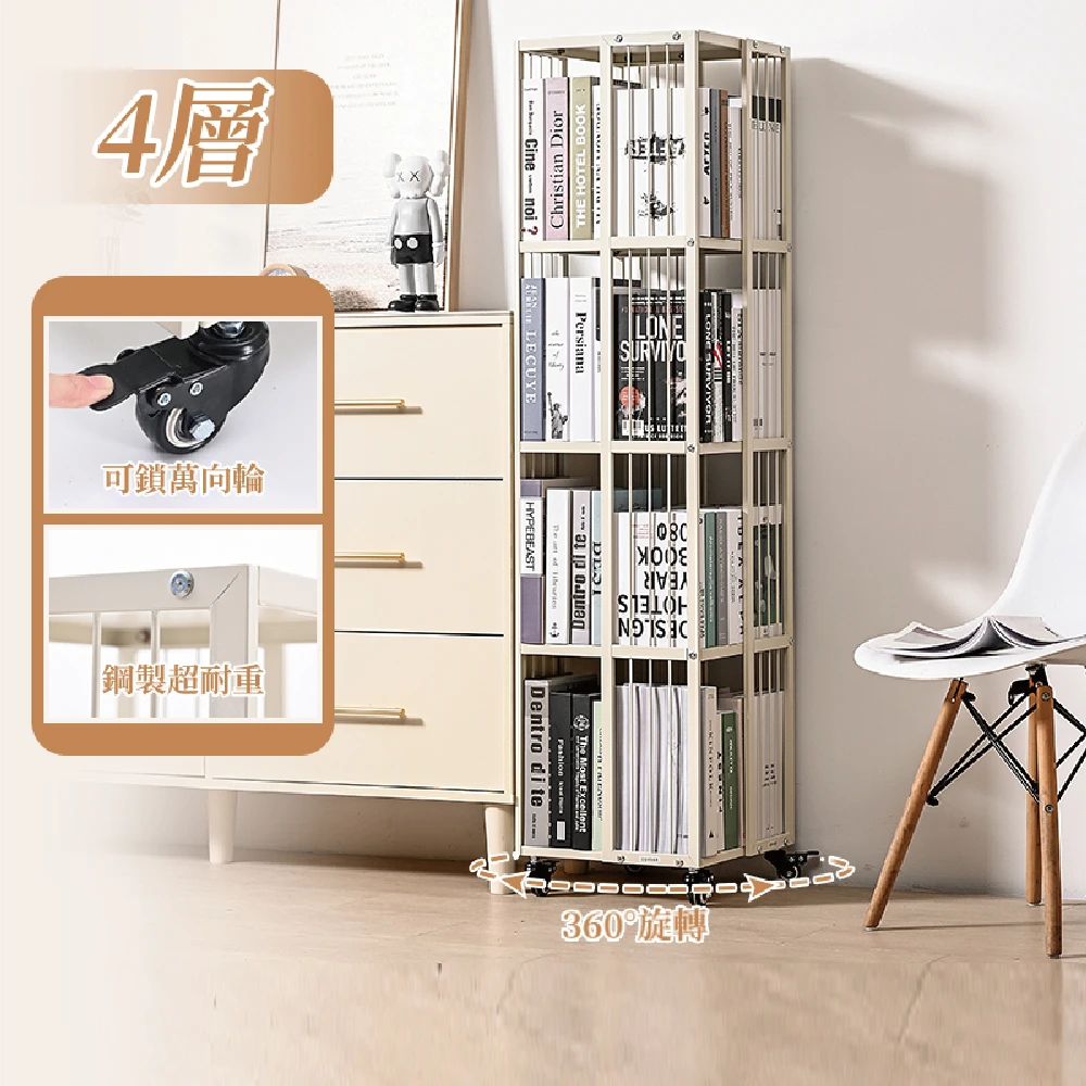 慢慢家居 360°旋轉超耐重加厚碳鋼可移動書櫃-四層(書架/收納架/置物架/層架)