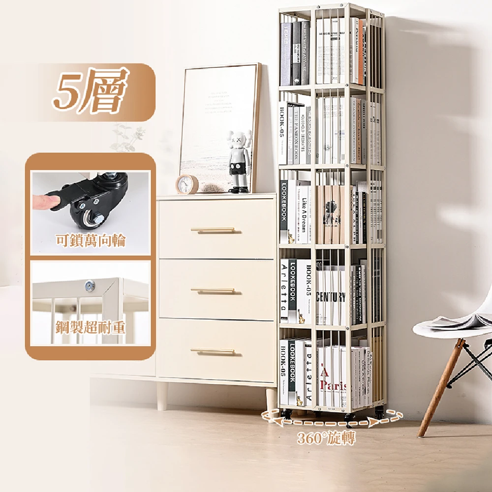 慢慢家居 360°旋轉超耐重加厚碳鋼可移動書櫃-五層(書架/收納架/置物架/層架)