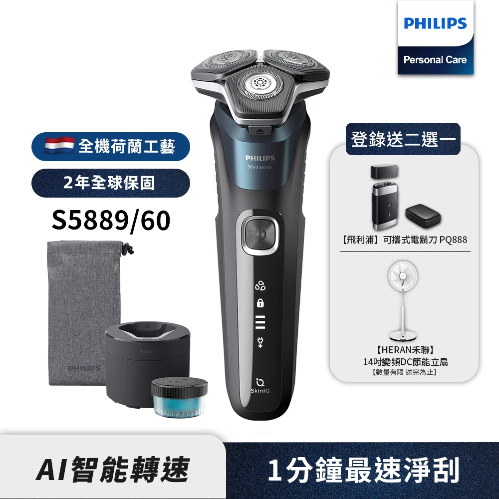 Philips 飛利浦 官方直營 全新AI 5系列電鬍刀 S5889/60(登錄送 好禮2選一)