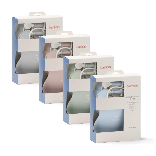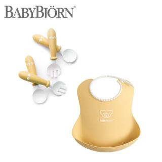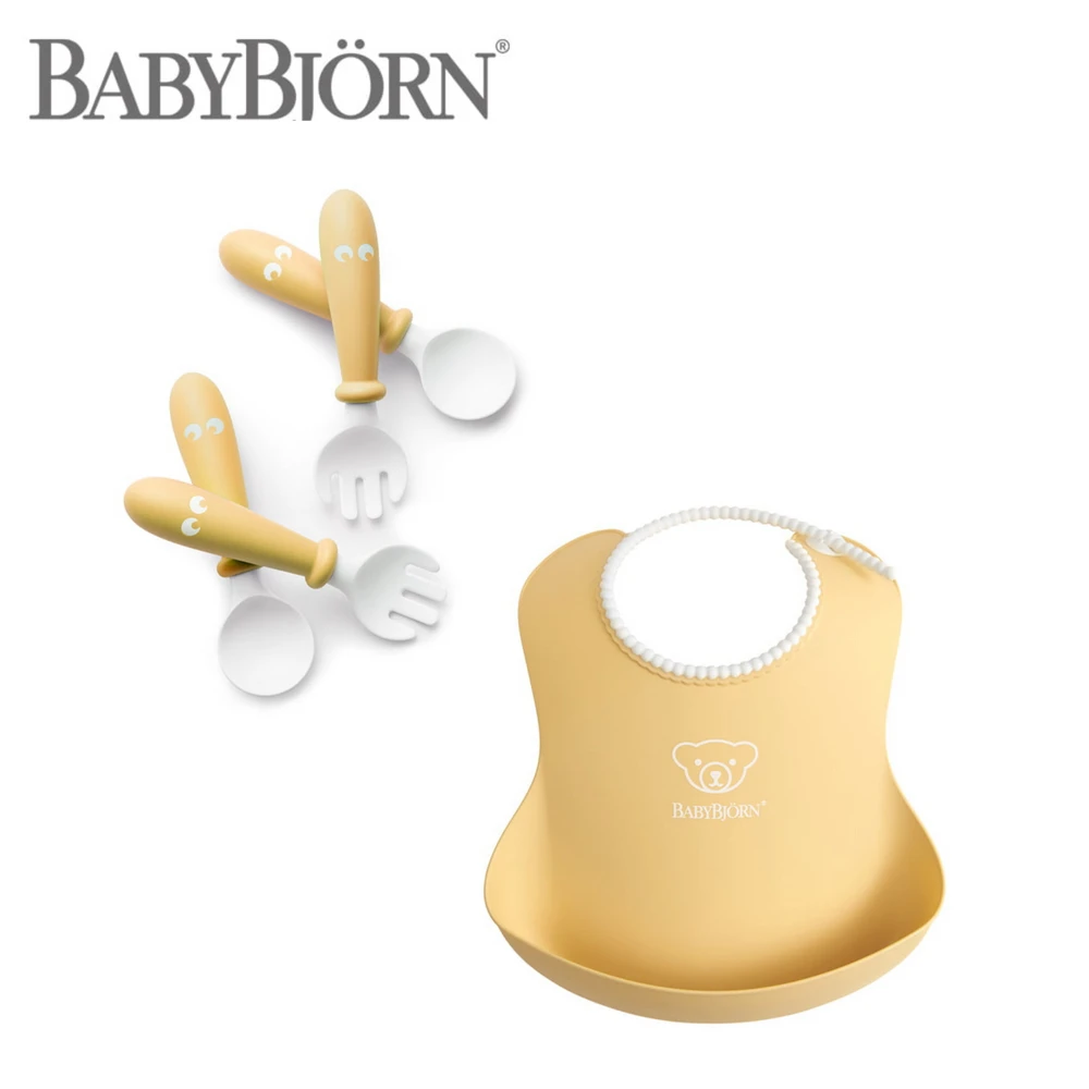 BABYBJORN 奇哥 軟膠珠邊防屑圍兜+湯匙叉子4入組/兒童餐具/學習餐具服(多色任選)