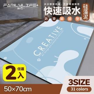 FL生活+ 奈米硅藻土速乾防滑吸水地墊-50*70-加大款2入(小豪宅玄關浴室加大組)