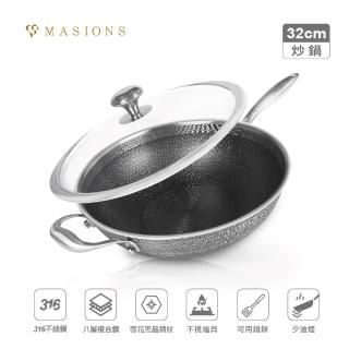 MASIONS 美心 維多利亞皇家316不鏽鋼雙層蜂巢雪花鍋不沾炒鍋32cm(台灣製/不挑爐具)