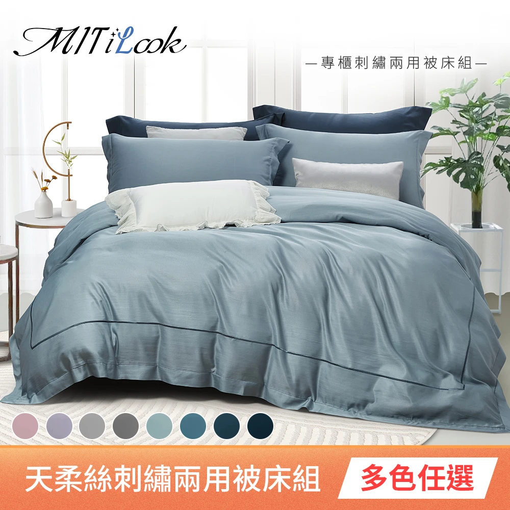 MIT iLook 專櫃級純色天柔絲x石墨烯刺繡兩用被床包組(單/雙/加大-多色任選)