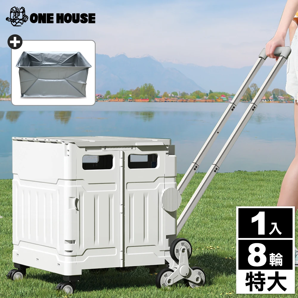 ONE HOUSE 平拉式8輪爬梯折疊收納車 買菜車 購物車 平拉推車(75L巨型推車+特大防水袋)