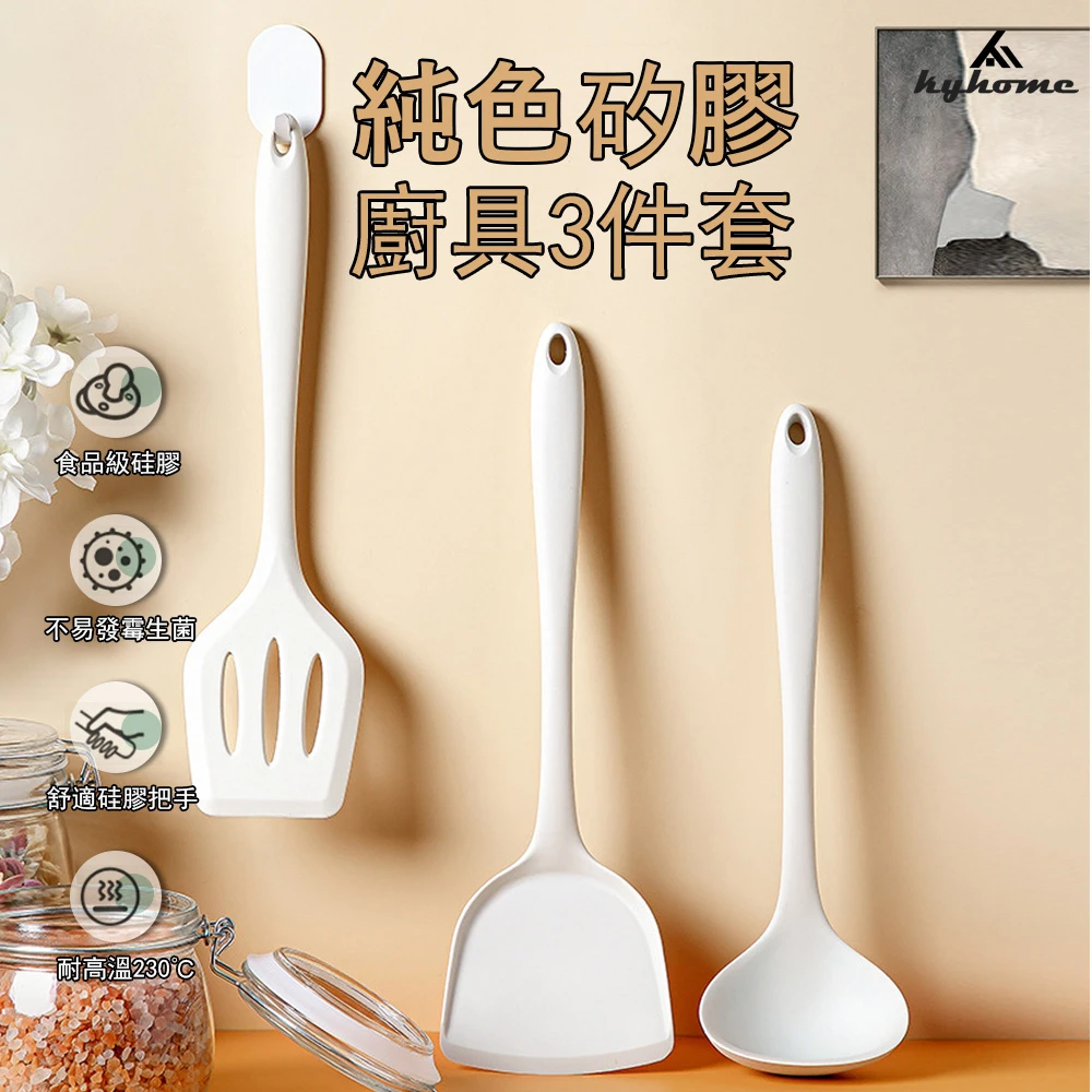 Kyhome 不粘鍋耐熱耐高溫矽膠鍋鏟 3件套 廚房工具(鍋鏟 湯勺 漏鏟)