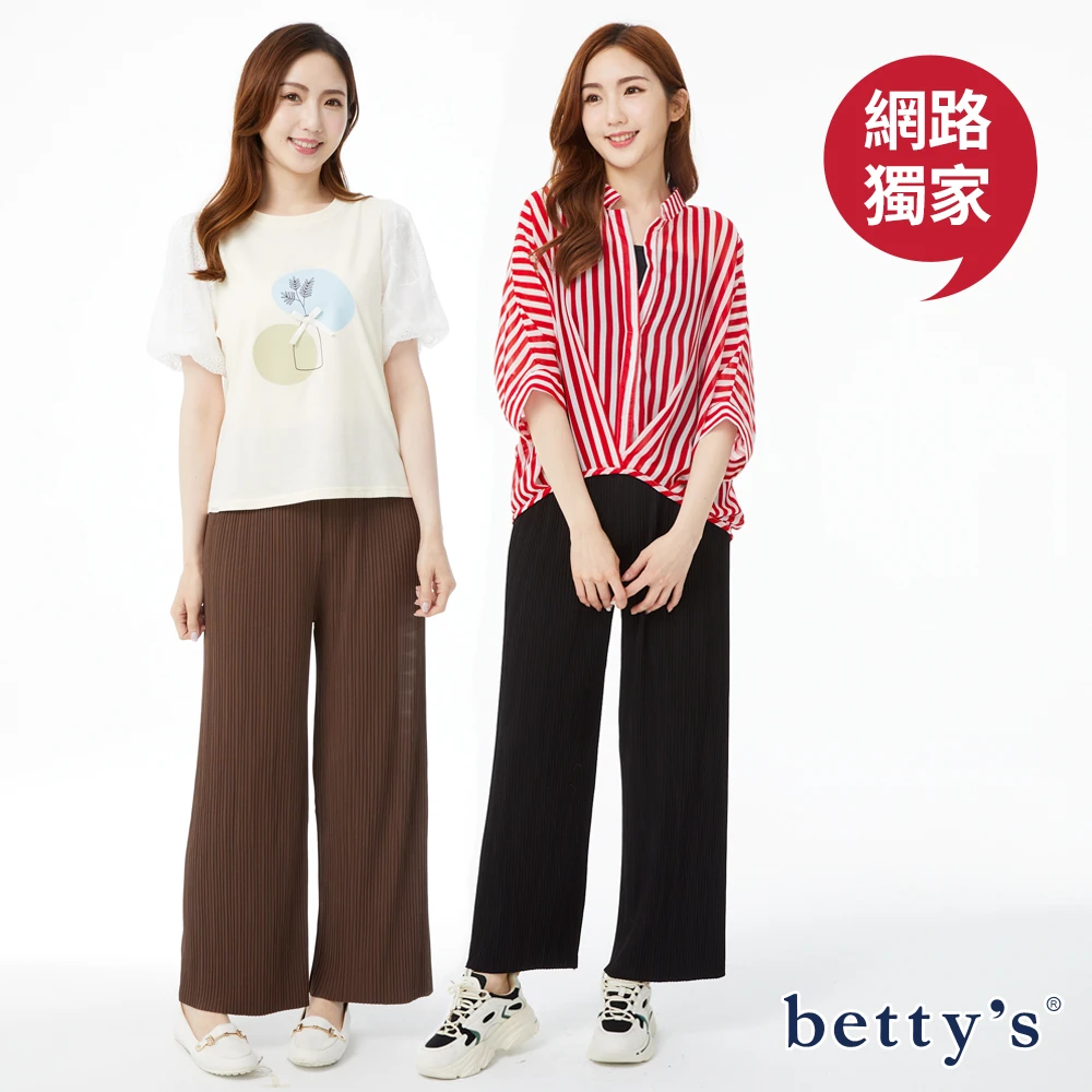 betty’s 貝蒂思 網路獨賣★超彈鬆緊腰細褶直紋修身長褲(共四色)