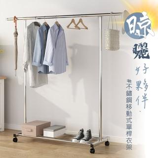 居家cheaper 不鏽鋼移動式單桿衣架-附輪組(曬被架/晾衣架/晾被架/吊衣架/掛衣架)