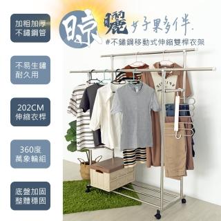 居家cheaper 不鏽鋼移動式伸縮雙桿衣架-附輪組(曬被架/晾衣架/晾被架/吊衣架/掛衣架)