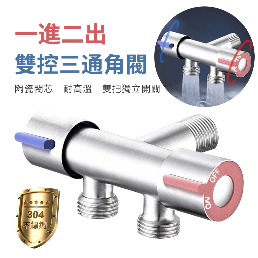 【神崎家居】304不鏽鋼一進二出雙控三通角閥【神崎家居】304不鏽鋼一進二出雙控三通角閥
