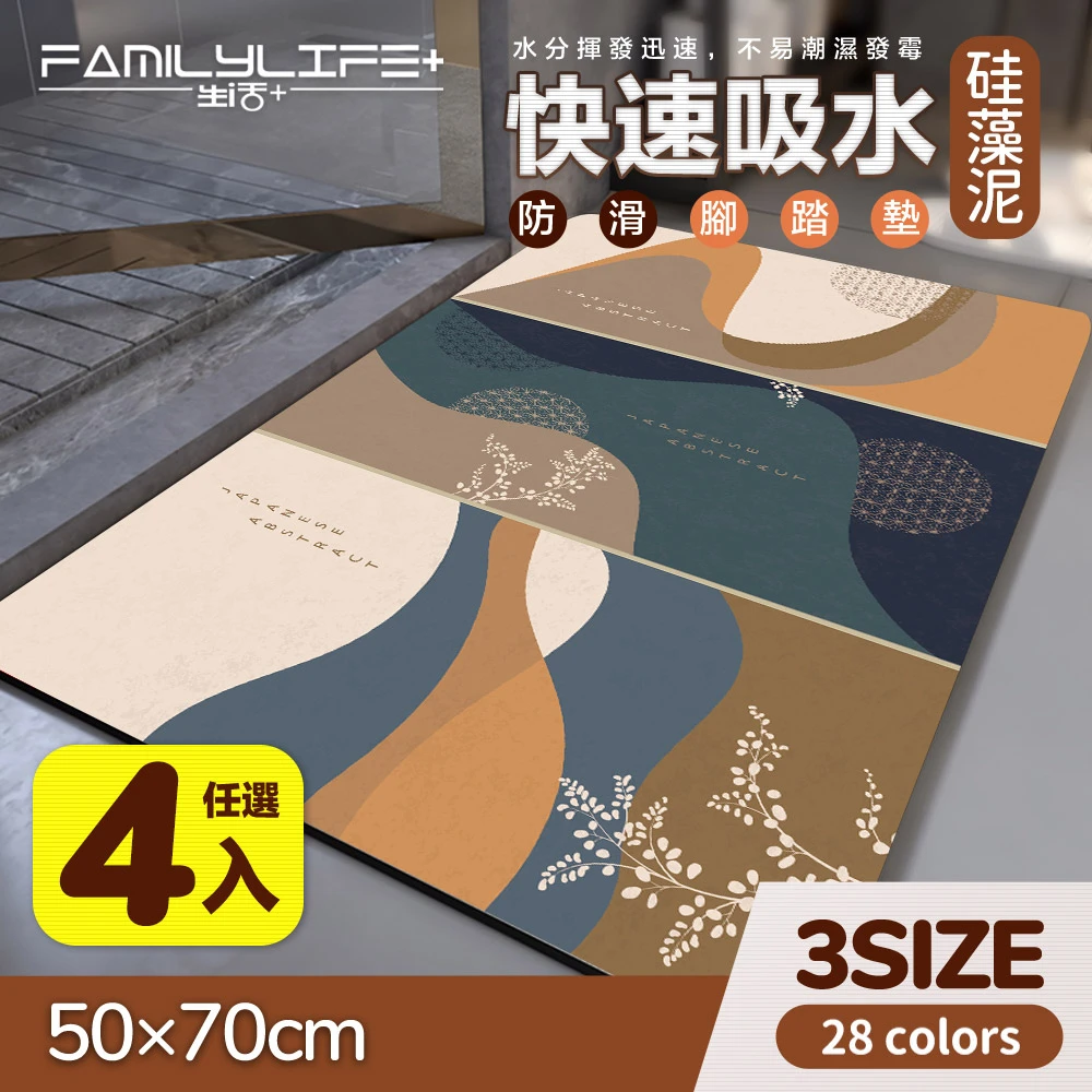 FL 生活+ 奈米硅藻土速乾防滑吸水地墊-50*70-加大款4入(清洗替換加大款4件組)