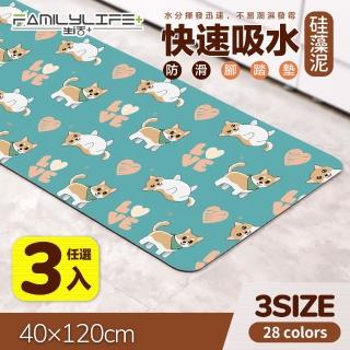 FL 生活+ 奈米硅藻土速乾防滑吸水地墊-40*120-特長款3入(豪宅廚房中島全配組)
