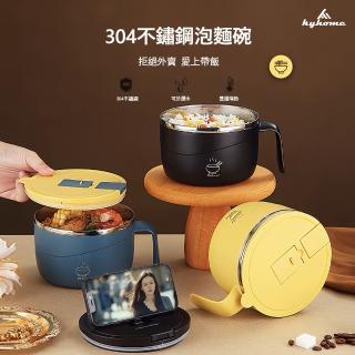 Kyhome 304不鏽鋼泡麵碗 帶蓋 雙層隔熱防燙 外帶飯盒 便當盒 學生宿舍餐碗 1800ml