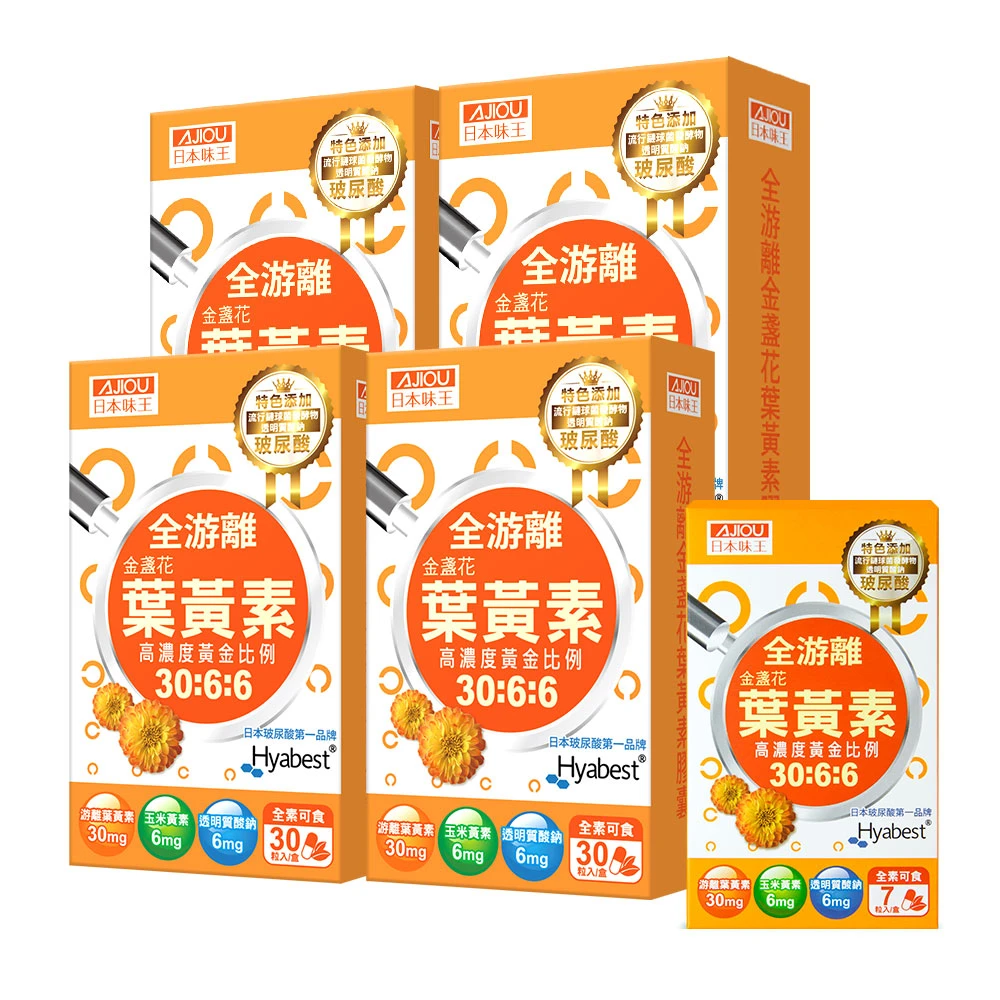 日本味王 【限定5折】30:6:6高濃度晶亮葉黃素30粒x4盒再贈7天份(游離型/玉米黃素/玻尿酸/全素)