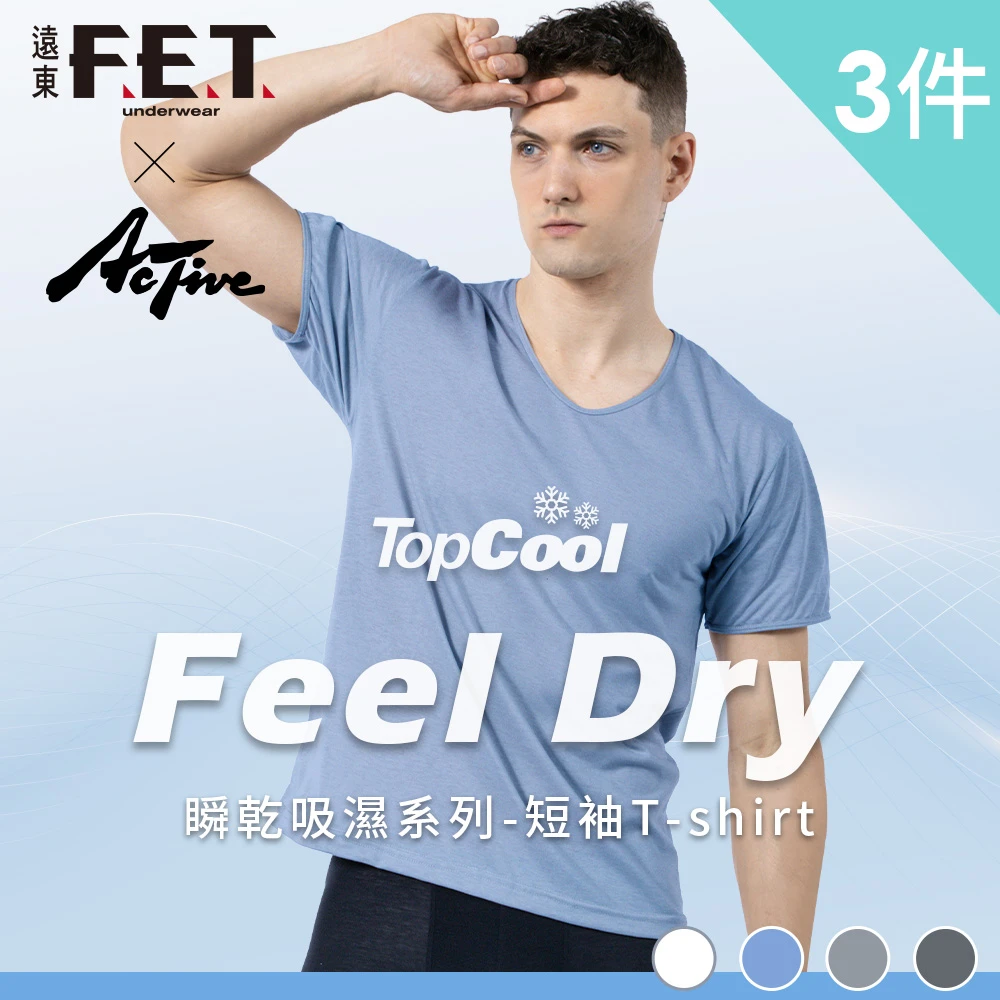 遠東FET 3件組Feel dry瞬乾吸濕排汗U領短袖(內衣/短袖/短袖上衣)