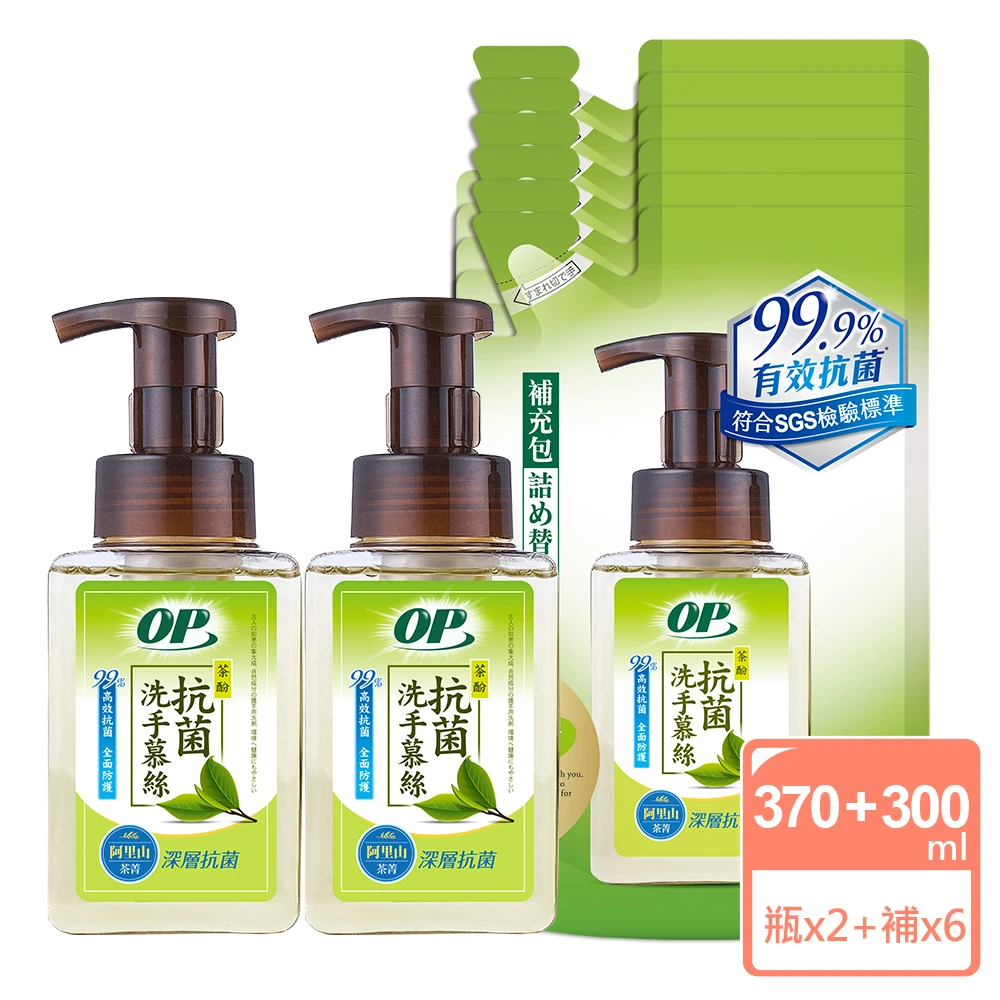 OP 天然茶酚洗手慕絲-深層抗菌型(2瓶+6補)