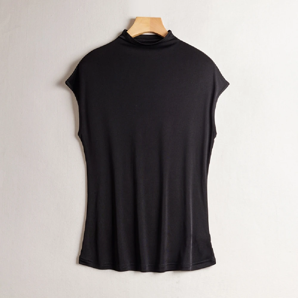 【米蘭精品】現貨+預購 絲質T恤絲質背心(純色半高領連肩舒適女上衣9色74fd27)