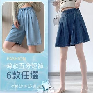 預購 MsMore 特大碼高腰牛仔五分褲裙闊腿壓褶顯瘦裙褲#118225(6款任選)