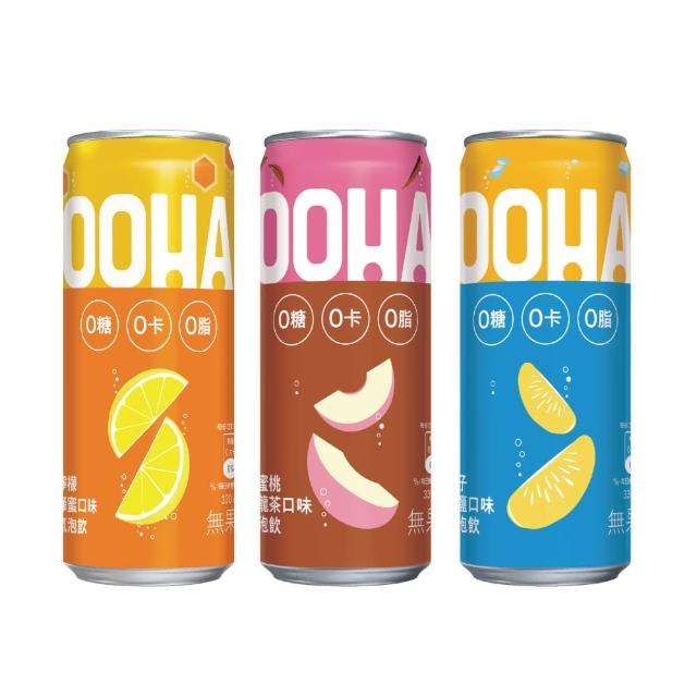 OOHA 氣泡飲 易開罐330mlx3箱 共72入(柚子海鹽/水蜜桃烏龍茶/檸檬蜂蜜)