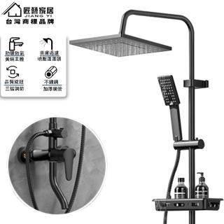 匠藝家居 質感槍黑淋浴套裝 花灑套裝 蓮蓬頭組合(方形頂噴 增壓出水 全銅閥芯 304不鏽鋼主體)
