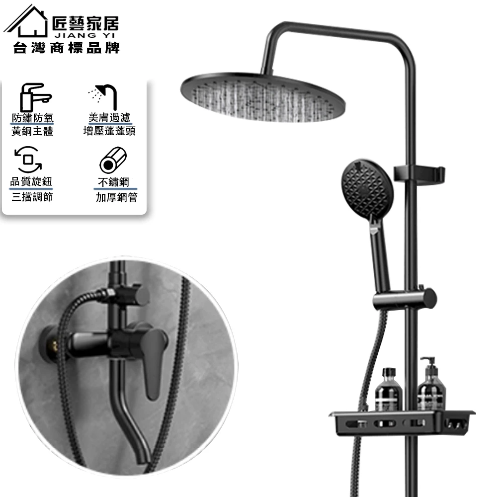 【匠藝家居】質感槍黑淋浴套裝 花灑套裝 蓮蓬頭組合(圓形頂噴 增壓出水 全銅閥芯 304不鏽鋼主體)【匠藝家居】質感槍黑淋浴套裝 花灑套裝 蓮蓬頭組合(圓形頂噴 增壓出水 全銅閥芯 304不鏽鋼主體)