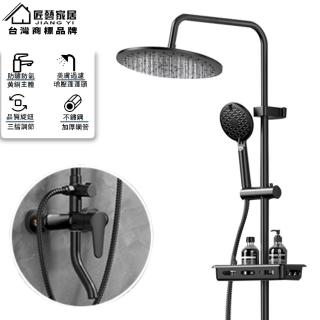 匠藝家居 質感槍黑淋浴套裝 花灑套裝 蓮蓬頭組合(圓形頂噴 增壓出水 全銅閥芯 304不鏽鋼主體)