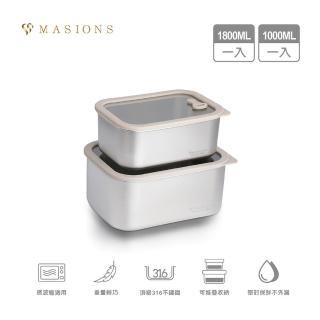 MASIONS 美心 PREMIUM 可微波 皇家316不鏽鋼矽膠玻璃蓋抗菌保鮮盒(大容量 2件組)