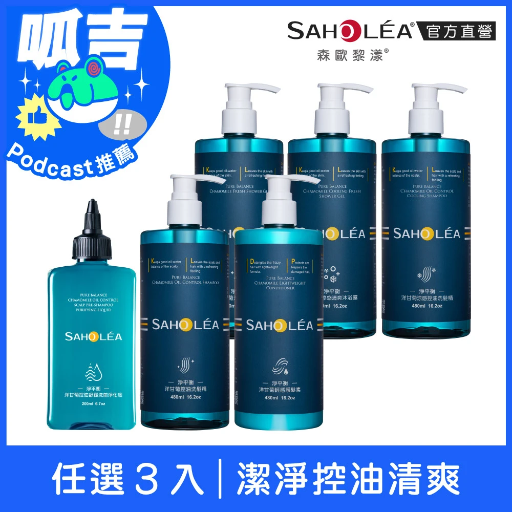 呱吉Podcast推薦 SAHOLEA森歐黎漾 淨平衡洋甘菊 洗髮精/沐浴露/護髮素480ml/淨化液200ml(任選3入)