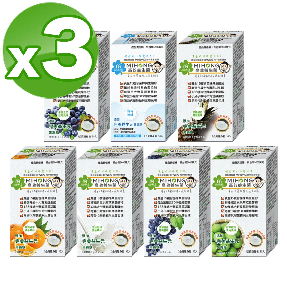 MIHONG米鴻生醫 高效益生菌-7種口味任選x3盒(30包/盒)