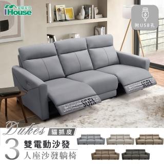 IHouse 杜克斯 3人加大240公分 零靠牆貓抓皮 雙電動沙發/沙發躺椅(附USB孔)