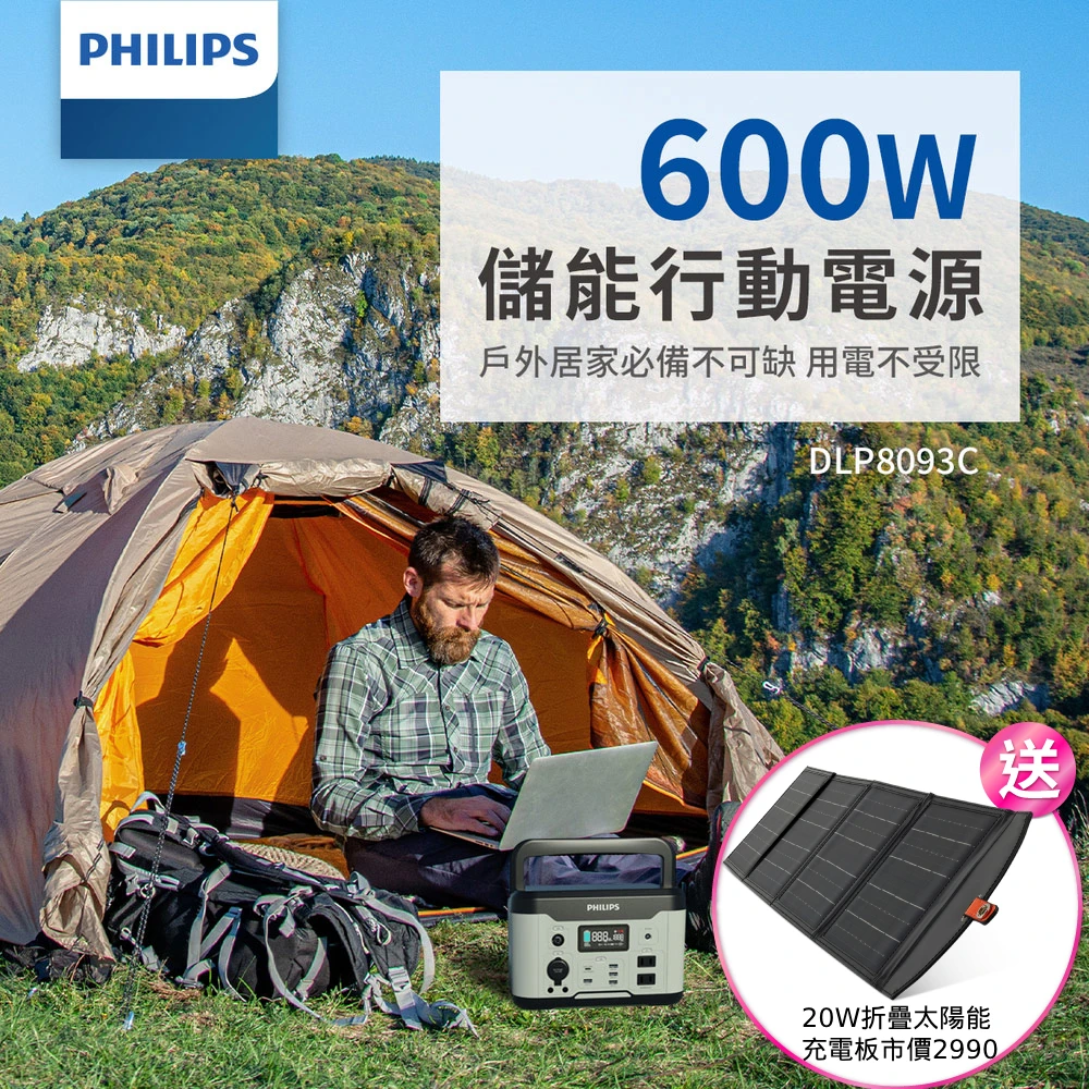 Philips 飛利浦 600W 攜帶式儲能行動電源 DLP8093C(露營/戶外行動電源/UPS不斷電)