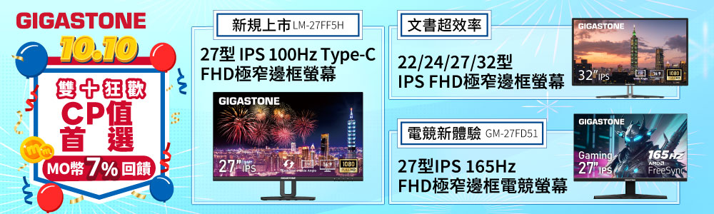 【GIGASTONE 立達】LM-27FF2 27型 IPS 極窄邊框電腦螢幕(護眼/HDMI/1080P/內建喇叭/低藍光/零閃屏)
