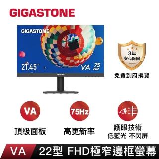 【GIGASTONE 立達】LA-22FA51 22型VA FHD極窄邊框電腦螢幕(護眼/75Hz/HDMI/VGA/1080P/低藍光/零閃屏)