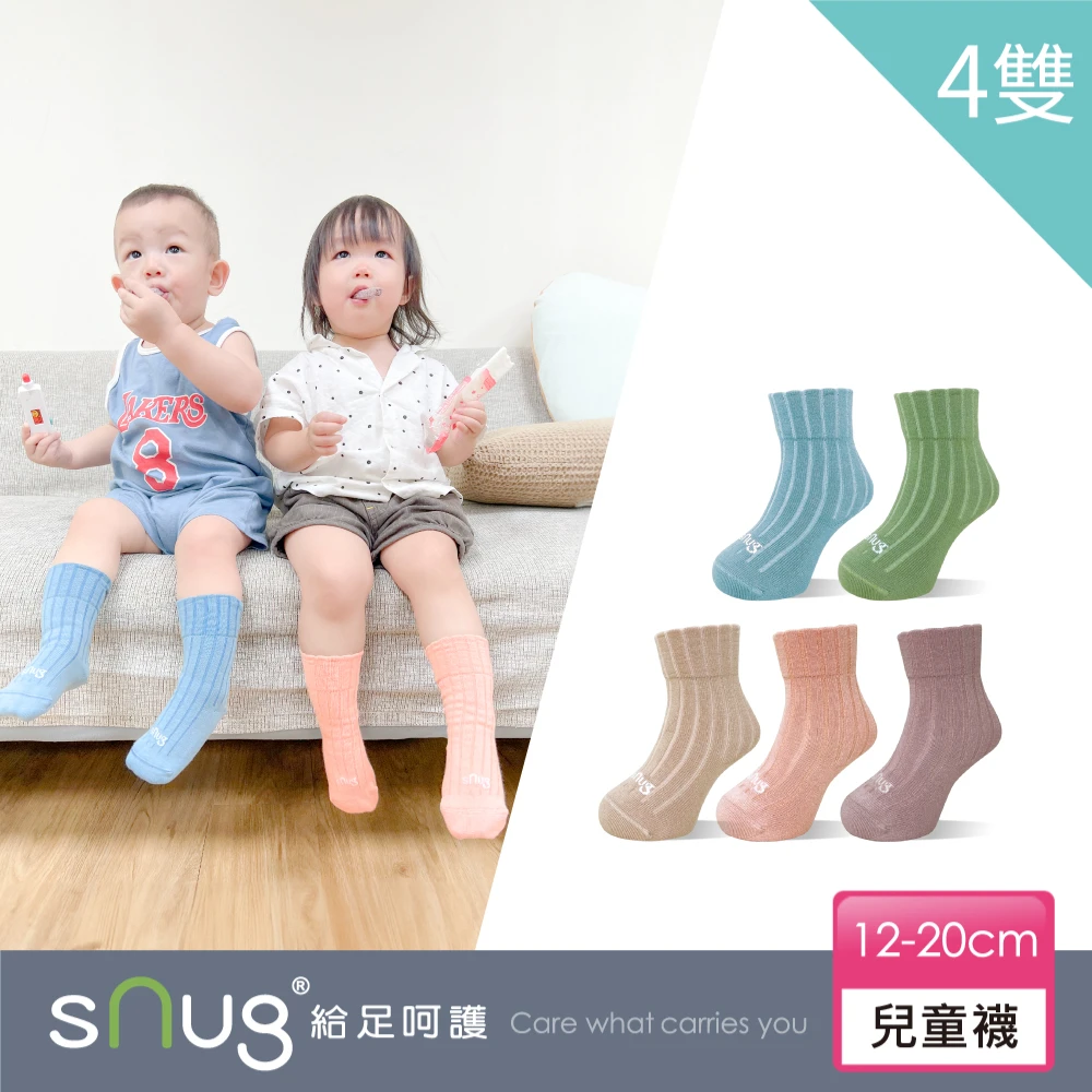 sNug 給足呵護 4雙組中筒健康除臭童襪(兒童襪/無毒襪/馬卡龍色/台灣製/10秒除臭襪)