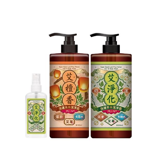 美吾髮 艾淨化 艾草強運能量PLUS超淨化潔淨露1000ml_2入組(艾淨化/艾檀香/午時水/大悲水/艾草沐浴乳)